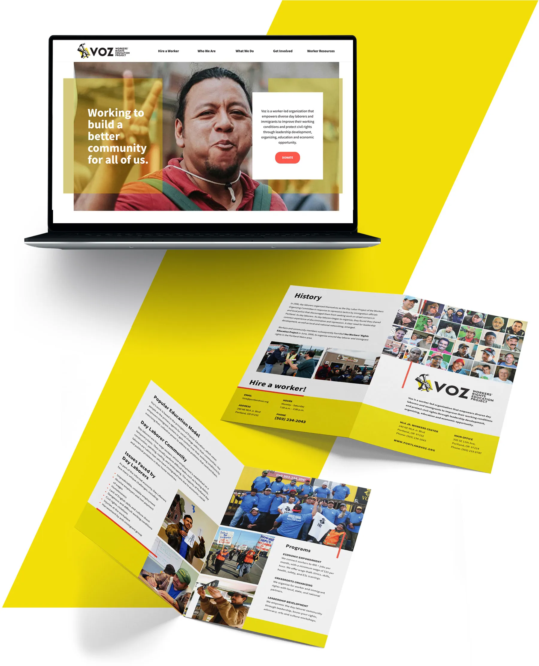 Turn Agency held an open call for Oregon-based non-profit companies to submit an application for a 1-year pro bono partnership. In order to support their mission, Voz was in need of a new brand and website.